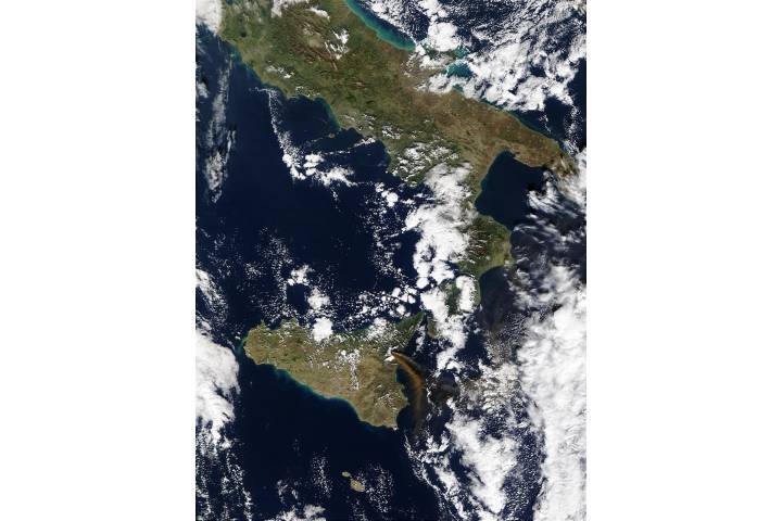 Eruption of Mt. Etna in Sicily region: Eu volcano Italy sat: Terra projection: Sinusoidal projection center lon: 15.5 image center lon: 15 image center lat: 39 UL lon: 11.3082 UL lat: 42.5952 LR lon: 18.3341 LR lat: 35.4006