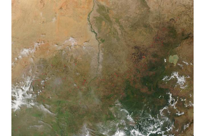 Fires in Sudan(morning overpass) region: Af Ethiopia sat: Terra projection: Sinusoidal projection center lon: 33 image center lon: 33 image center lat: 11.5 UL lon: 27.4003 UL lat: 15.5459 LR lon: 38.4430 LR lat: 7.4520 Contact: Jacques Descloitres