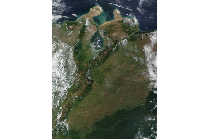 Fires in Venezuela and Colombia region: SA sat: Terra projection: Sinusoidal projection center lon: -71 image center lon: -71 image center lat: +7.5 UL lon: -75.1505 UL lat: +12.8951 LR lon: -66.9492 LR lat: +2.1033 Contact: Jacques Descloitres
