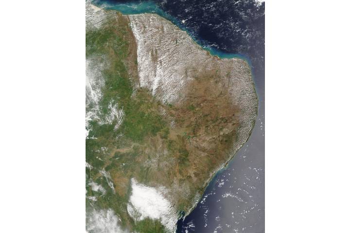 Fires in eastern Brazil region: SA sat: Terra projection: Sinusoidal projection center lon: -39 image center lon: -39 image center lat: -8 UL lon: -43.4987 UL lat: -2.1550 LR lon: -34.3677 LR lat: -13.8462 Contact: Jeff Schmaltz