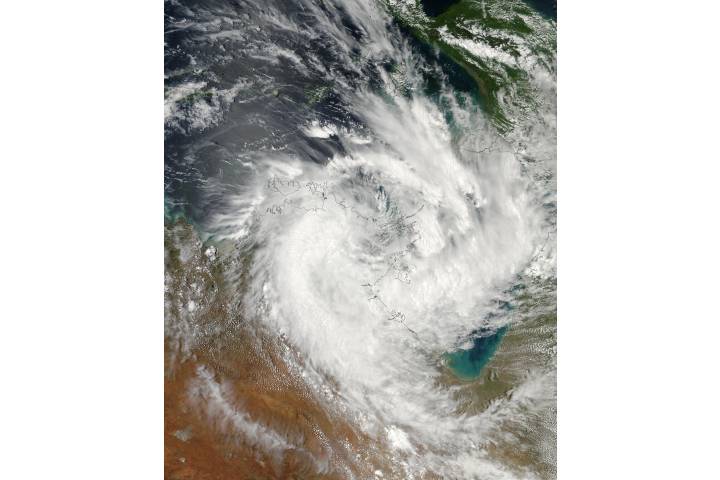 Storm over northern Australia region: AU sat: Aqua projection: Sinusoidal projection center lon: +134.5 image center lon: +134.5 image center lat: -13 UL lon: +124.3474 UL lat: -5.1829 LR lon: +145.3189 LR lat: -20.8194 Contact: Jeff Schmaltz