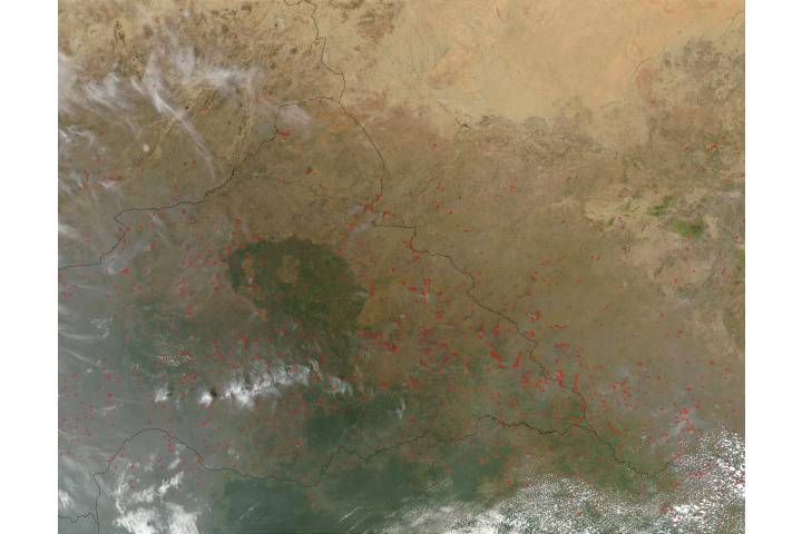Fires in Central Africa (afternoon overpass) region: Af Central African Republic Chad Sudan sat: Aqua projection: Sinusoidal projection center lon: +24 image center lon: +24 image center lat: +8 UL lon: +17.7780 UL lat: +12.7198 LR lon: +30.0815 LR lat: +3.2769 Contact: Jacques Descloitres