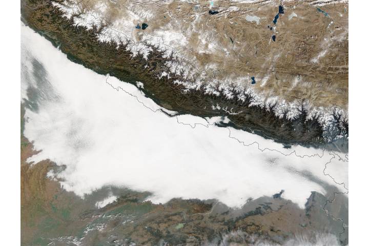 Smog in Northern India region: As Nepal China Tibet sat: Terra projection: Sinusoidal projection center lon: +83 image center lon: +83 image center lat: +27.5 UL lon: +76.6698 UL lat: +31.5448 LR lon: +88.8830 LR lat: +23.4509 Contact: Jacques Descloitres