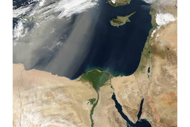 Dust storm off Egypt region: ME Af Israel Lebanon Jordan Syria Saudi Arabia Cyprus sat: Aqua projection: Sinusoidal projection center lon: +31 image center lon: +31 image center lat: +32 UL lon: +23.7299 UL lat: +36.4956 LR lon: +37.5916 LR lat: +27.5023 Contact: Jacques Descloitres