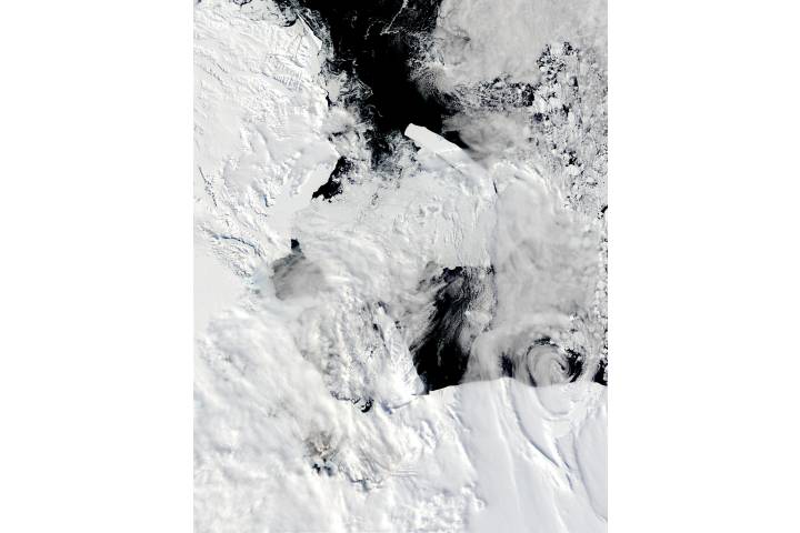 B-15A and C-19 icebergs in the Ross Sea, Antarctica region: An sat: Terra projection: Lambert Azimuthal projection center lon: -170 projection center lat: -90 image center lon: +171 image center lat: -75.5 UL lon: +166.0901 UL lat: -70.5242 LR lon: -179.2082 LR lat: -80.2376 Contact: Jacques Descloitres