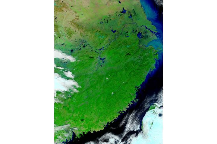 Eastern China(false color) region: As Yangtze sat: Terra projection: Sinusoidal projection center lon: +117 image center lon: +117 image center lat: +28 UL lon: +111.2864 UL lat: +34.2945 LR lon: +122.0829 LR lat: +21.7040 Contact: Jacques Descloitres