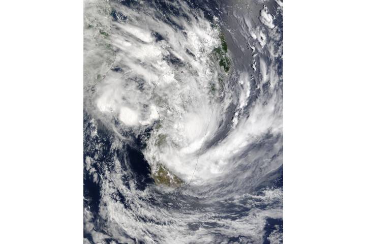 Tropical Cyclone Fari (11S) over Madagascar region: AF IN sat: Terra projection: Sinusoidal projection center lon: +46.5 image center lon: +46.5 image center lat: -20 UL lon: +38.2796 UL lat: -10.1095 LR lon: +55.8374 LR lat: -29.8945 Contact: Jeff Schmaltz