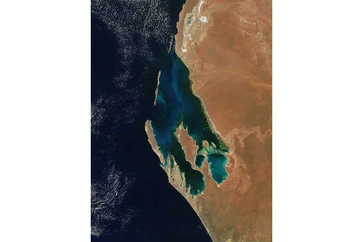 Phytoplankton bloom in Shark Bay, Western Australia region: Au sat: Terra projection: Plate Carree projection center lon: +113.5000 projection center lat: -25.5000 image center lon: +113.5 image center lat: -25.5 UL lon: +112.0656 UL lat: -23.7027 UR lon: +114.9368 UR lat: -23.7027 LR lon: +114.9368 LR lat: -27.3000 LL lon: +112.0656 LL lat: -27.3000 UL easting (km): -149.8750 UL northing (km): -2635.6250 x scale factor: +0.9396926207859084 ellipsoid: WGS84 Contact: Jeff Schmaltz L2 granules: T043110215 T043110220