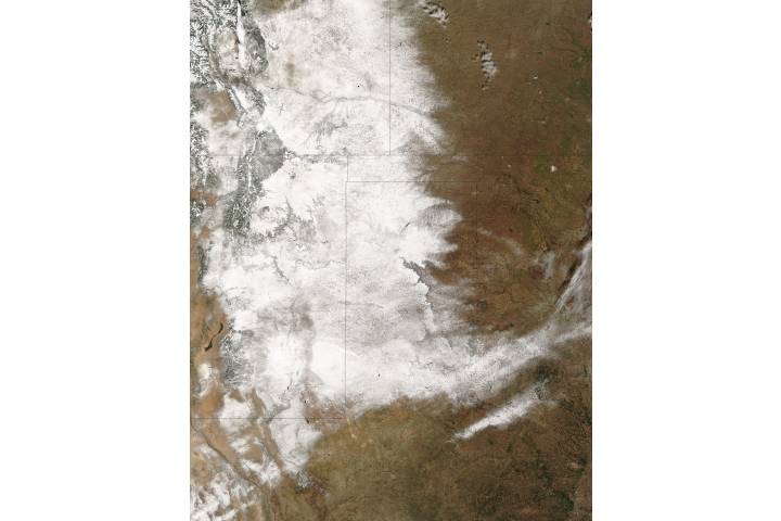 Snow in the Great Plains region: NA United States Colorado Kansas New Mexico Oklahoma Texas sat: Terra projection: Plate Carree projection center lon: -102.0000 projection center lat: +35.0000 image center lon: -102 image center lat: +35 UL lon: -106.6646 UL lat: +39.9444 UR lon: -97.3327 UR lat: +39.9444 LR lon: -97.3327 LR lat: +30.0519 LL lon: -106.6646 LL lat: +30.0519 UL easting (km): -424.8750 UL northing (km): +4441.6250 x scale factor: +0.8191520442889918 ellipsoid: WGS84 Contact: Jeff Schmaltz L2 granules: T043601735