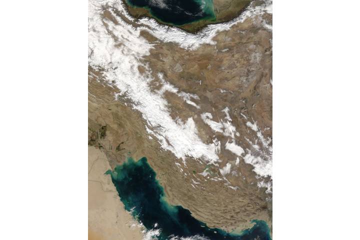 Snow in Iran region: As Kuwait sat: Terra projection: Plate Carree projection center lon: +52.0000 projection center lat: +32.0000 image center lon: +52 image center lat: +32 UL lon: +46.8091 UL lat: +37.8445 UR lon: +57.1935 UR lat: +37.8445 LR lon: +57.1935 LR lat: +26.1534 LL lon: +46.8091 LL lat: +26.1534 UL easting (km): -499.8750 UL northing (km): +4208.1250 x scale factor: +0.8660254037844387 ellipsoid: WGS84 Contact: Jeff Schmaltz L2 granules: T043640715 T043640720