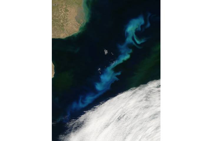 Phytoplankton bloom off Argentina region: At SA sat: Terra projection: Plate Carree projection center lon: -60.8000 projection center lat: -42.5000 image center lon: -60.8 image center lat: -42.5 UL lon: -63.7335 UL lat: -39.5780 UR lon: -57.8636 UR lat: -39.5780 LR lon: -57.8636 LR lat: -45.4236 LL lon: -63.7335 LL lat: -45.4236 UL easting (km): -249.8750 UL northing (km): -4400.8750 x scale factor: +0.7660444431189780 ellipsoid: WGS84 Contact: Jeff Schmaltz L2 granules: T050041335