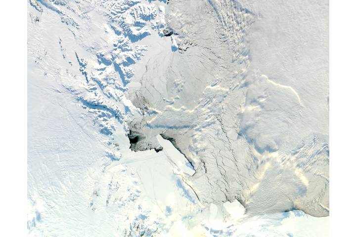 B-15A, B-15J, B-15K, and C-16 icebergs in the Ross Sea, Antarctica region: An sat: Terra projection: Lambert Azimuthal projection center lon: -170.0000 projection center lat: -75.0000 image center lon: +168 image center lat: -75 UL lon: +161.5576 UL lat: -71.4490 UR lon: -178.4726 UR lat: -73.4000 LR lon: +178.0512 LR lat: -78.2742 LL lon: +152.3351 LL lat: -75.6478 UL easting (km): -968.2500 UL northing (km): +158.7500 ellipsoid: Sphere Earth radius (km): 6371.007181 Contact: Jeff Schmaltz L2 granules: T050942235 T050942240