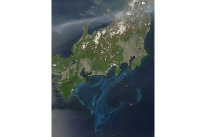 Phytoplankton bloom off Japan region: As smoke sat: Aqua projection: Plate Carree projection center lon: +138.0000 projection center lat: +35.0000 image center lon: +138 image center lat: +35 UL lon: +134.7078 UL lat: +38.5955 UR lon: +141.2950 UR lat: +38.5955 LR lon: +141.2950 LR lat: +31.4009 LL lon: +134.7078 LL lat: +31.4009 UL easting (km): -299.8750 UL northing (km): +4291.6250 x scale factor: +0.8191520442889918 ellipsoid: WGS84 Contact: Jeff Schmaltz L2 granules: A051240405