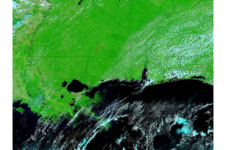 The Gulf Coast (before flooding) region: NA katrina United States Louisiana Mississippi Alabama sat: Aqua projection: Plate Carree projection center lon: -89.0000 projection center lat: +30.5000 image center lon: -89 image center lat: +30.5 UL lon: -92.1140 UL lat: +32.5228 UR lon: -85.8834 UR lat: +32.5228 LR lon: -85.8834 LR lat: +28.4759 LL lon: -92.1140 LL lat: +28.4759 UL easting (km): -299.8750 UL northing (km): +3616.3750 x scale factor: +0.8660254037844387 ellipsoid: WGS84 Contact: Jeff Schmaltz L2 granules: A052391925