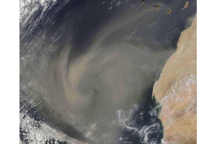 Dust storm off West Africa region: Af At Canary Islands sat: Terra projection: Plate Carree projection center lon: -21.0000 projection center lat: +23.0000 image center lon: -21 image center lat: +23 UL lon: -28.9371 UL lat: +28.8446 UR lon: -13.0604 UR lat: +28.8446 LR lon: -13.0604 LR lat: +17.1534 LL lon: -28.9371 LL lat: +17.1534 UL easting (km): -799.8750 UL northing (km): +3207.3750 x scale factor: +0.9063077870366499 ellipsoid: WGS84 Contact: Jeff Schmaltz L2 granules: T052471210