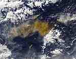 A major eruption blasted from the Anatahan volcano on April 6, 2005, sending a plume of ash up to 15,200 meters (50,000 feet) into the air. This is the largest eruption ever recorded at the volcano, larger even than its first recorded eruption on May 10, 2003. This Moderate Resolution Imaging Spectroradiometer (MODIS) image was acquired by NASA’s Terra satellite at 00:35 UTC, about eight hours after the eruption began. By this time, the ash plume had spread south to entirely cover Saipan and Tinian, the islands immediately south of the volcano. Anatahan is an uninhabited island, and there have been no injuries reported from either Saipan or Tinian, the inhabited islands that have been affected. Aircraft have been warned to avoid the area because volcanic ash can destroy jet engines.