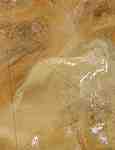 Orange-tan veils of dust sweep across the Sahara Desert in northwestern Africa in this true-color Moderate Resolution Imaging Spectroradiometer (MODIS) image acquired July 18, 2005 by the Aqua satellite. The dust curls through northern Mali and southern Algeria in this image, obscuring the dramatic geography of the land below. Little to no vegetation grows in this region, and what little does is mostly shrubbery that supports only nomadic herding. Farther south, where precipitation is more regular, peanuts are a popular crop in the grass savannas, but here the precipitation and population are so low that a stationary, agricultural lifestyle isn’t possible.